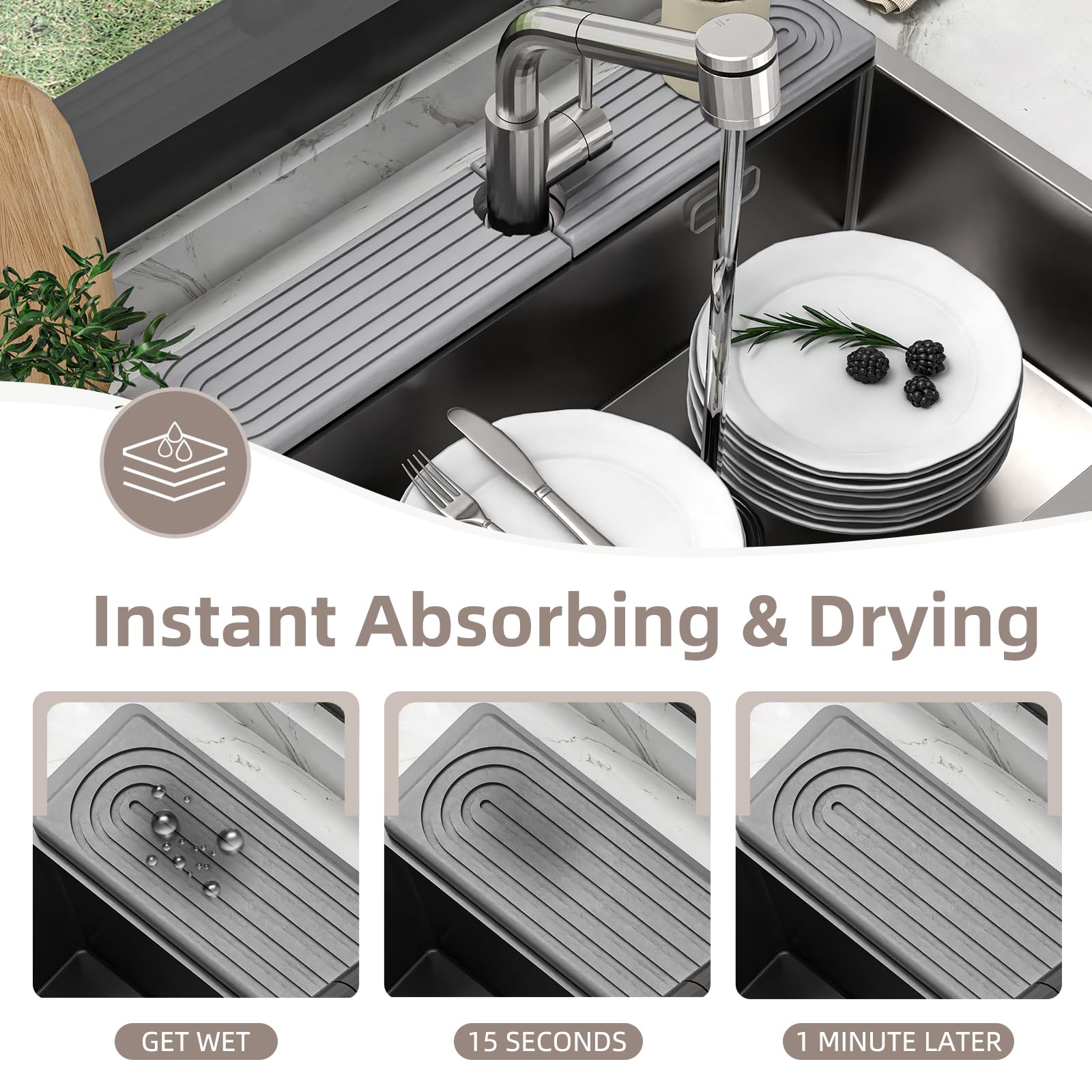 Faucet Mat for Kitchen Sink - Super Absorbent Diatomite Fast Drying Stone, Quick Drying Splash Guard,Prevents Moisture Buildup Sink, Durable Protector for Kitchen,Bathroom Counter